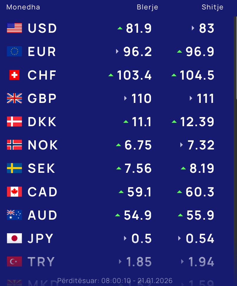 Ndërsa paundi britanik do blihet me 110 lekë dhe do shitet me 111 lekë.