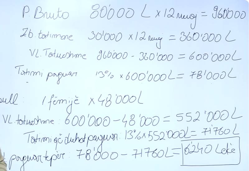 Një tjetër shembull me poshte kur individi merr 80 mije leke page bruto dhe ka dy femije, perfiton vetem 6.240 leke.